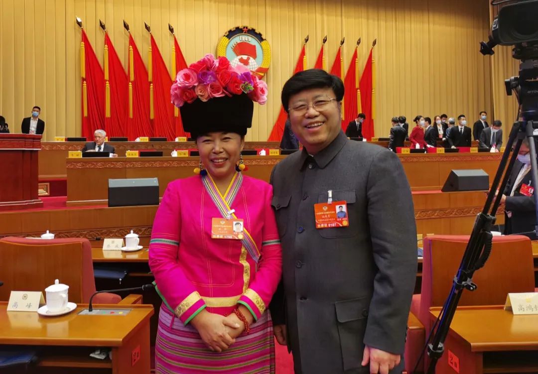 我多年前的一件小故事与布朗族有关。2005年我应文化部及国防科工委之邀,为宇宙航天试验画画,记得当时100多位画家参与了创作活动,是合作中国人物画、花鸟画、山水画三件长卷,都是56米长。其中人物画长卷选全国56位人物画家画56个少数民族。让我画的是布朗族少女。都是用非常薄的特殊纸画的,因太空舱要求东西份量不能太重,装裱成三个长卷后,搭载“神舟六号”宇宙飞船游太空。一晃过去20多年了,这是我第一次见到布朗族,张敏就坐在我邻座,刚才又听她讲了这个民族翻天覆地的变化,所以倍感亲切。散会后合了一张影留作纪念。