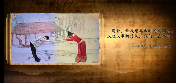“两会,让我想起古时的大朝会。议政议事的传统,我们一直都有。”