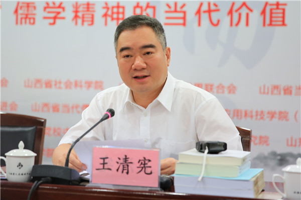 山西省委宣传部部长王清宪在讲话中说,这是一次太平盛世中的儒雅盛会,中华传统文化是一个庞大兼容的体系,在这一体系中,儒学由孔孟而扩散,传承两千多年,成为中华传统文化枝干。习近平总书记说,孔子创立的儒家学说以及在此基础上创立起来的儒家思想对中华文明产生了深刻的影响,是中国传统文化的重要组成部分。文化自信与治理能力高度相关,国家的治理体系和治理能力与历史传承和文化繁荣密切相关。以“儒学精神的当代价值”为主题开展学术研讨极具时代高度。