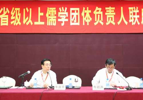 中国孔子基金会副理事长牛廷涛(右)主持会议的讨论。