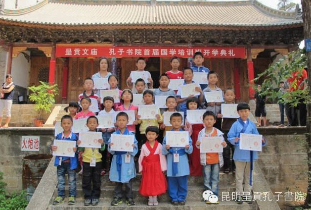 呈贡文庙是呈贡老百姓的精神家园,也是传播传统文化、教化一方百姓的重要平台。孔子书院成立至今,已成功举办五届寒暑假公益国学班,招收呈贡周边学龄儿童,主要授课内容为《三字经》《千字文》《弟子规》等蒙学经典、传统礼仪、书法入门等。五届公益国学班的举办,已有数百孩子受益。与经典同行,与圣贤为友,在中华传统文化的熏陶下,学子们必将树立远大理想,受益终生。