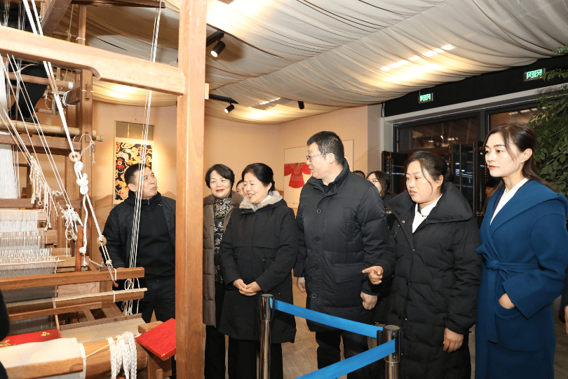开幕式结束后,国承彦一行参观孔博织造展厅,现场观摩传统纺织技艺,欣赏独具中国传统文化元素的精美服饰。她表示,中华传统技艺、传统服饰中蕴含着丰富的文化底蕴,要持续挖掘传统技艺的文化价值,推动中华传统服饰传承创新;充分利用新媒体平台,开拓中华服饰文化传播渠道,在弘扬中华文化中增强文化自信。黄河文化大集上,一字排开的“非遗”摊位热闹不凡、产品琳琅满目,既有喜庆的面花、精美的剪纸、楷木雕刻等传统手工品和手工技艺的展示,也有书法、拓印等非遗体验活动。国承彦饶有兴致地欣赏精美的展品,与非遗传承人亲切攀谈,仔细听取非遗技艺介绍。她表示,要深入挖掘民俗文化资源,创新“非遗”传承发展方式,探索传统民俗文化的现代传播形式,激活传统文化的时代价值,不断推动乡村文化全面振兴。