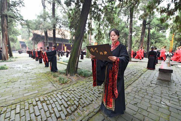 9月28日,辛丑年祭孔大典在孔子故里山东曲阜孔庙举行,工作人员起舞乐奏《万世师表》