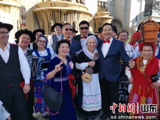 陈强与葡萄牙当地民众进行文化交流。受访者供图