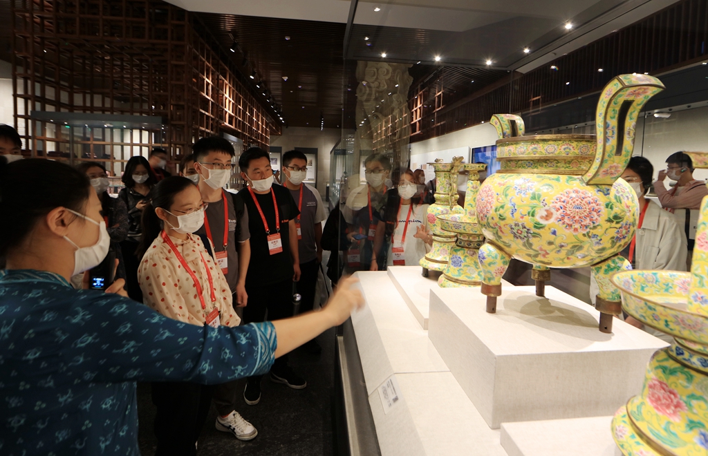 ▲孔子与中华文明展厅:黄地画珐琅五供