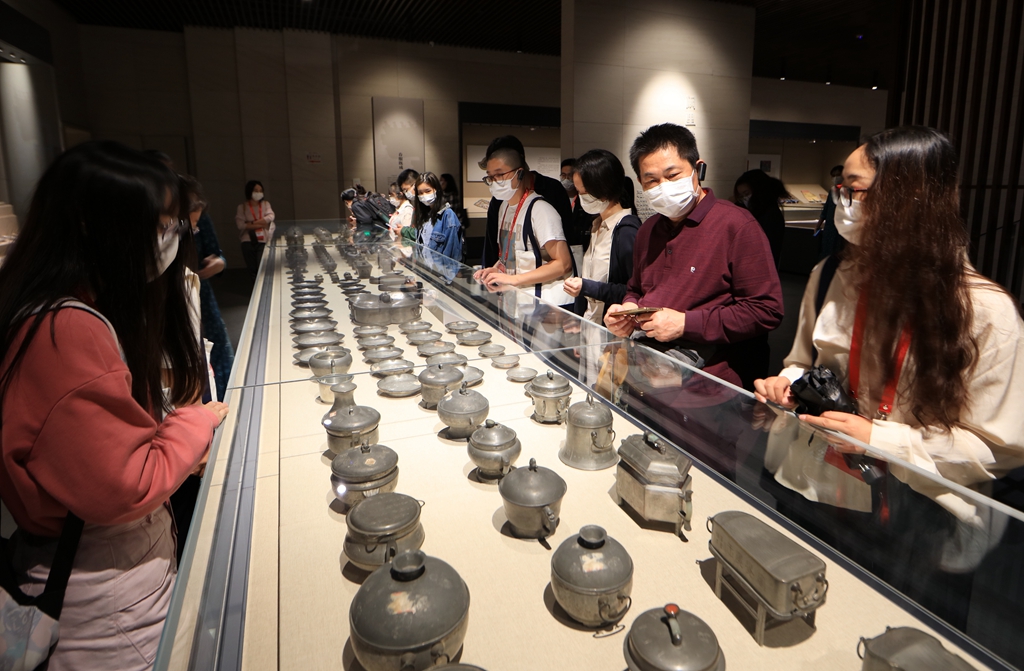 ▲孔子的时代展厅:西周“侯母”铭夔纹螭耳铜壶