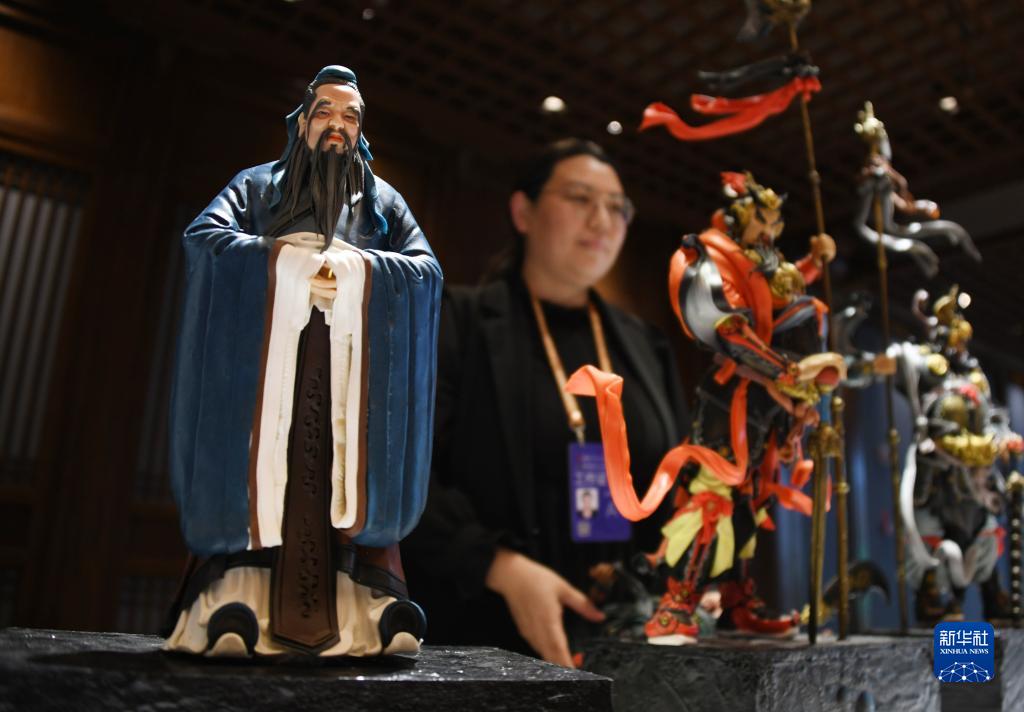 在“2022中国(曲阜)国际孔子文化节 第八届尼山世界文明论坛”——“中国手造·山东手造”精品展上,众多民间工艺非遗传承人带来了不同载体、形态以及表现形式的孔子造像,惟妙惟肖,令人耳目一新。新华社记者 李紫恒 摄