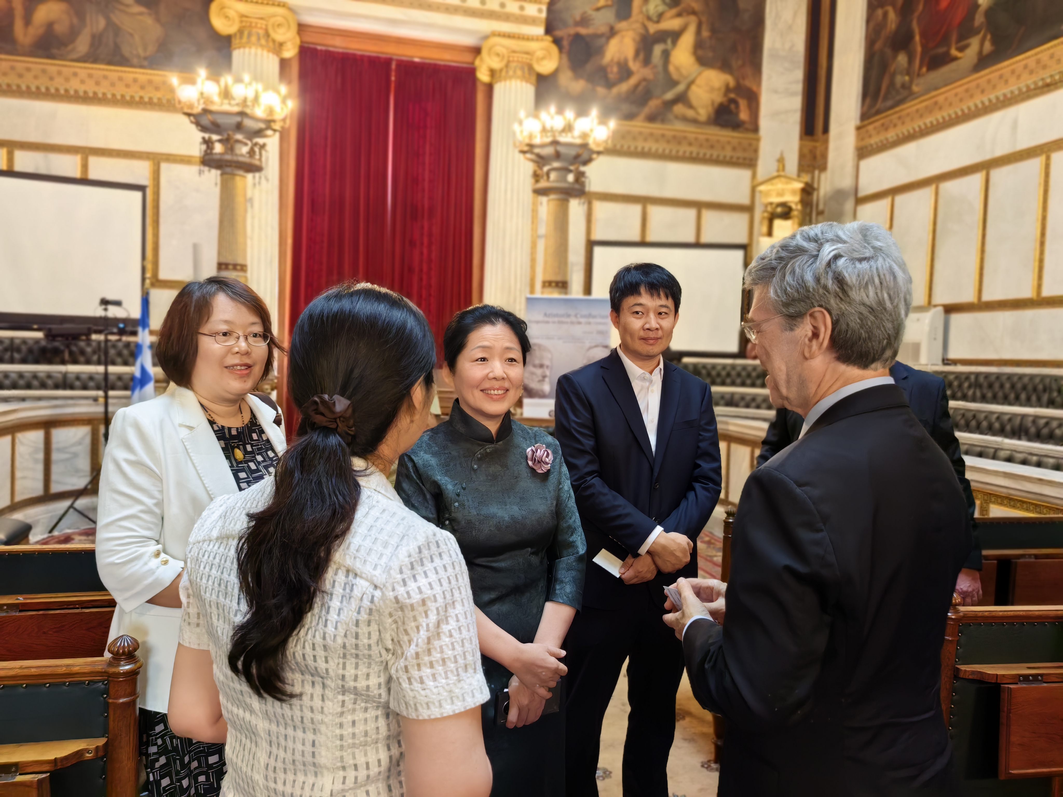 雅典经济与商业大学校长迪米特里斯·波兰特尼斯在致辞中表示,雅典经济与商业大学参与组织了2019年、2022年和2023年的亚里士多德—孔子研讨会,为优秀学者提供了国际交流平台。他们借鉴古希腊和中国的智慧,探讨应对当代挑战的办法,为人类社会繁荣和进步做出贡献。