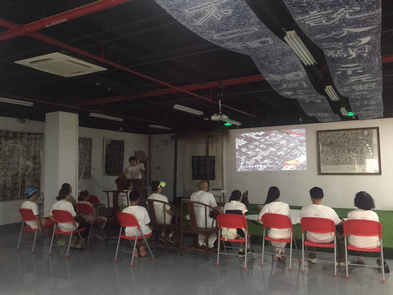 大家在石敢当摩崖艺术博物馆一号展厅,观看传拓工艺宣传片,了解这项古老的传统技艺。