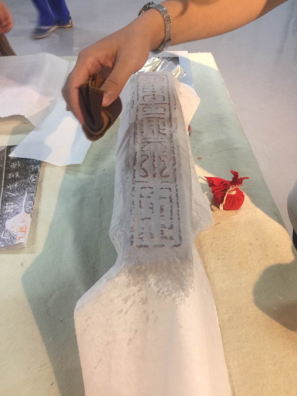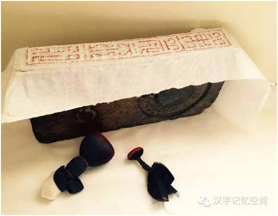 见识一下传拓过程:宣纸铺平打湿,点少许朱砂,便可将千年石刻传拓下来带回家收藏咯。
