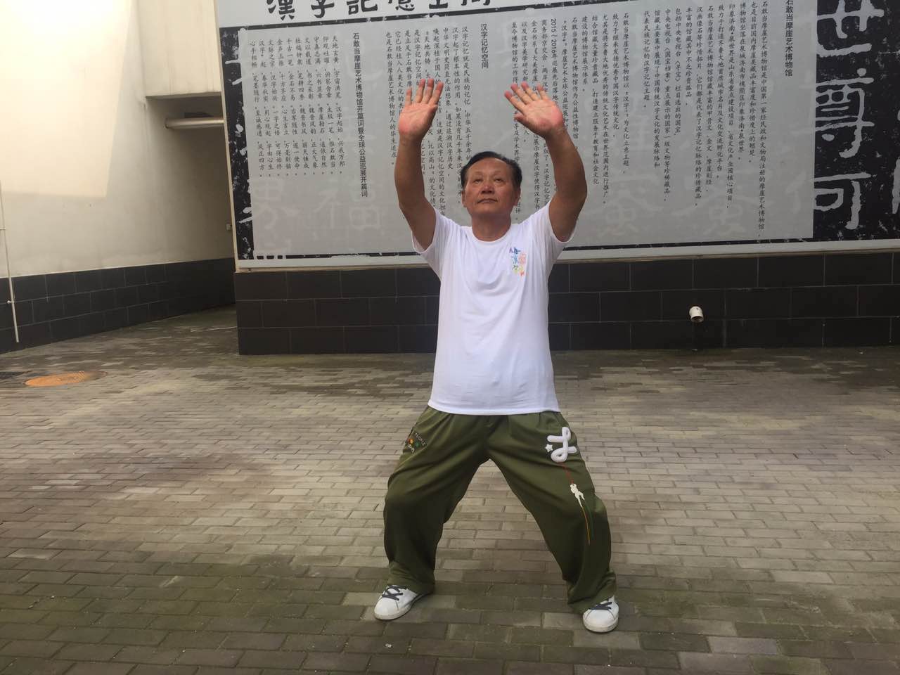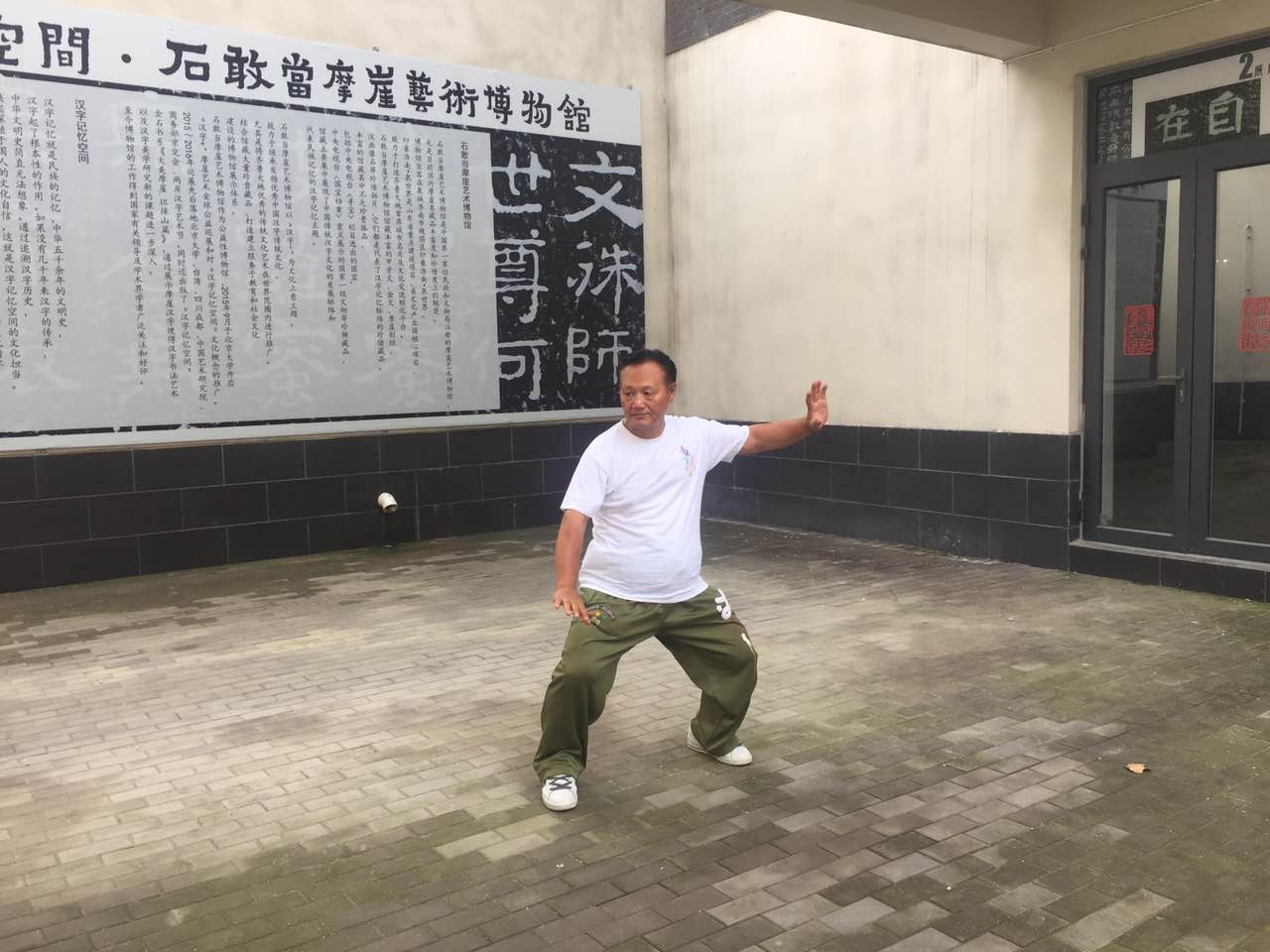 出发邹城前,来自吉林省的八极拳研究会副秘书长赵增元老先生,表演一段八极拳。烈日之下,赵秘书长动作朴实,苍劲有力,拳脚腾挪之间颇显大家风范。