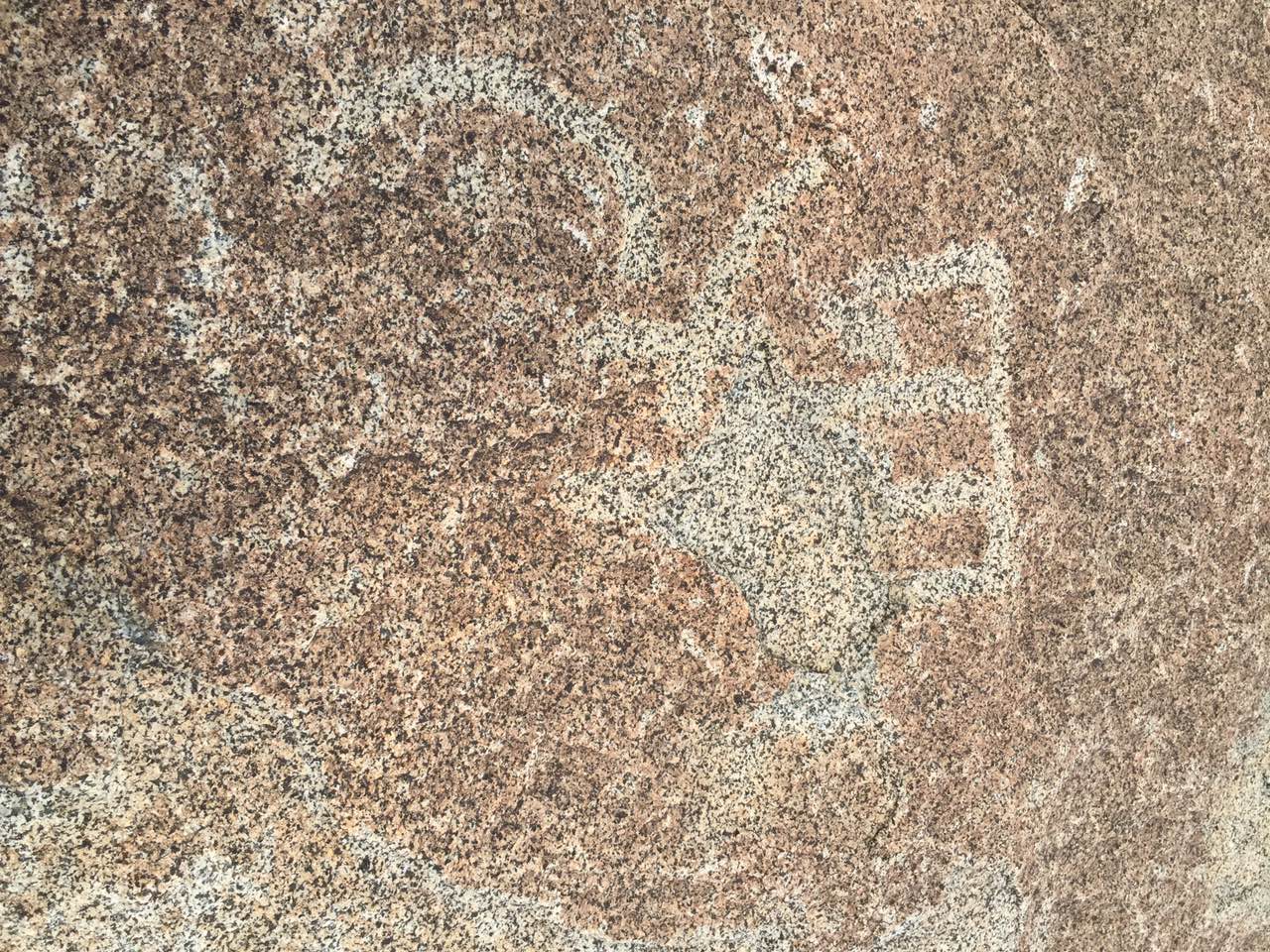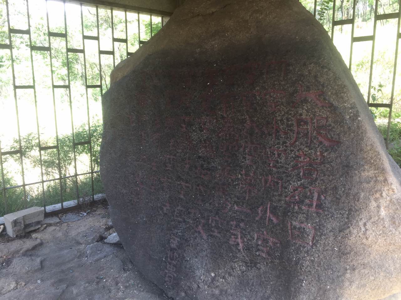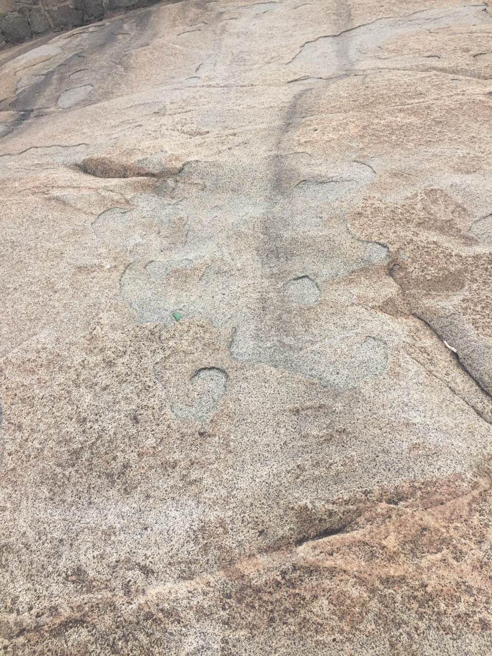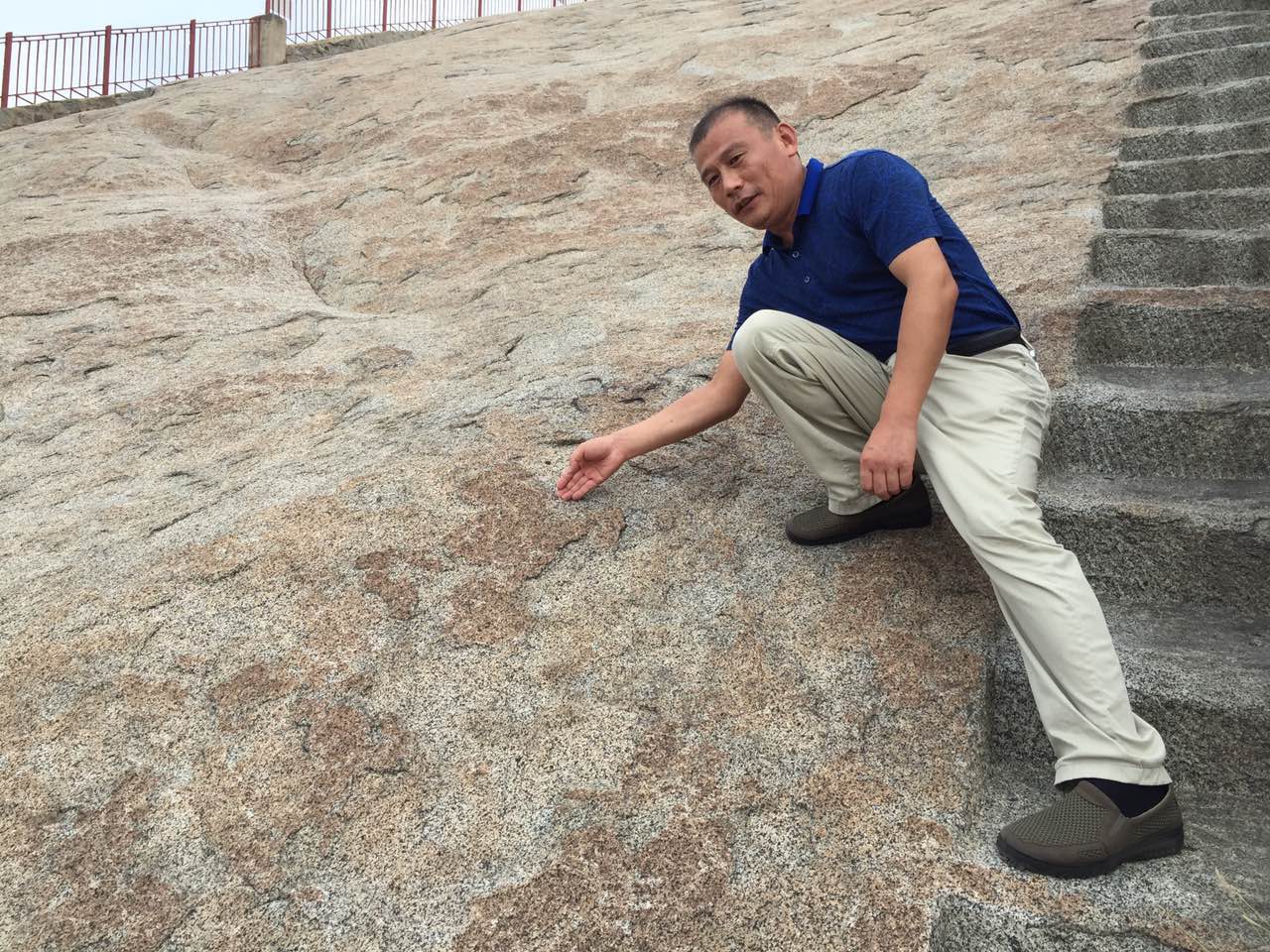 此岩石名为片麻岩,上面的刻经距今1500年历史,据张教授介绍由于这类岩石质地不够坚硬,受到腐蚀,易脱落,所以且看且珍惜吧……