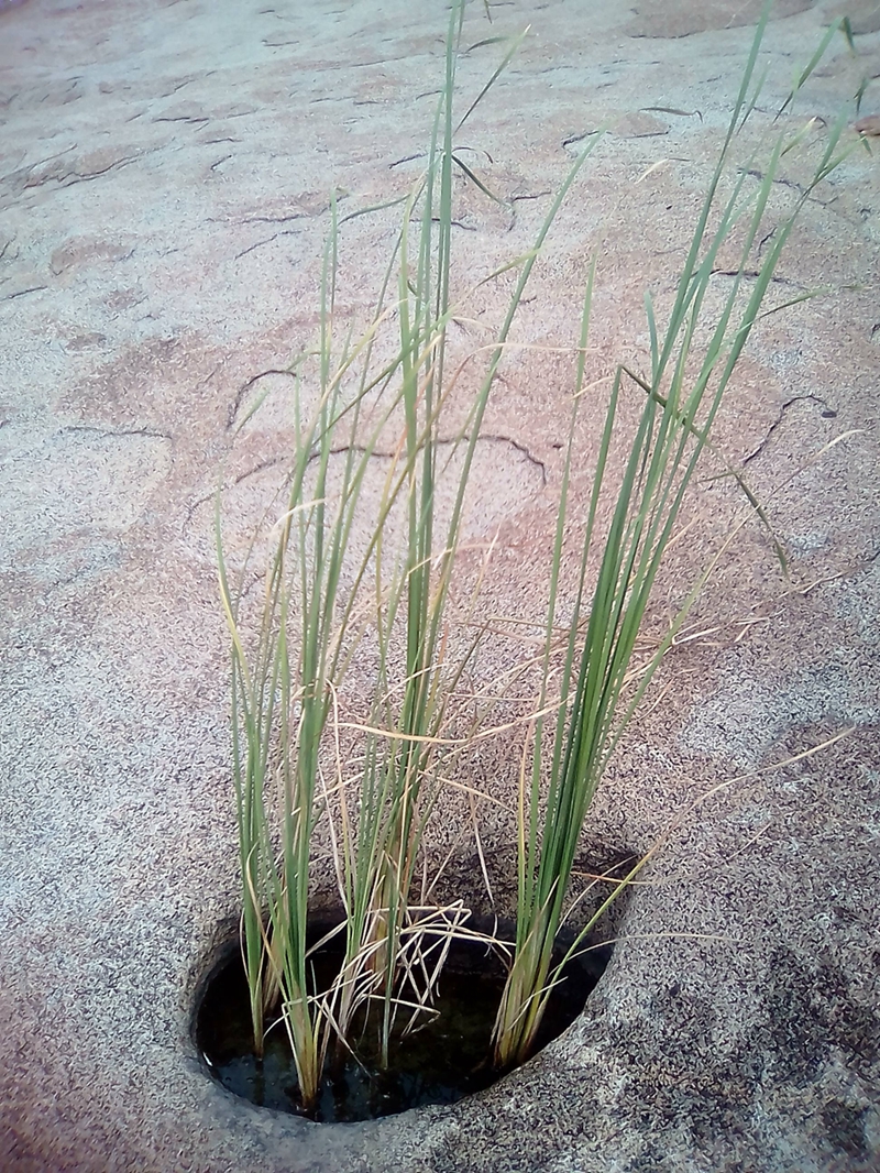 风吹草不折,弱极而生刚。陡峭山壁中的一片水洼,竟有植物傲然生长。静立尘世,独对风霜,足见生命之顽强!