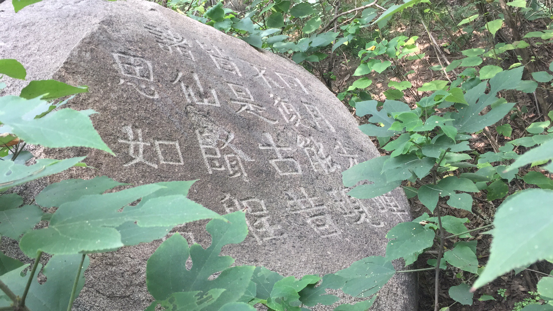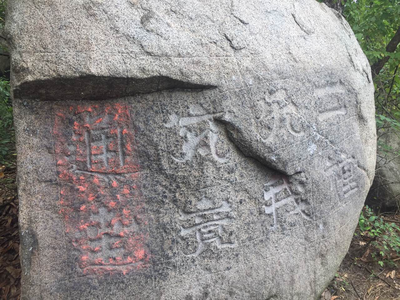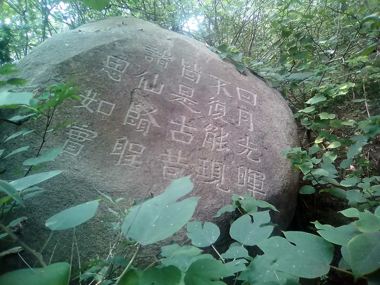 现在向康有为先生称为“大字鼻祖”的四山摩崖岗山进发,与之前看到的铁山整块石刻不同,在于岗山的石刻是呈碎块状分布。
