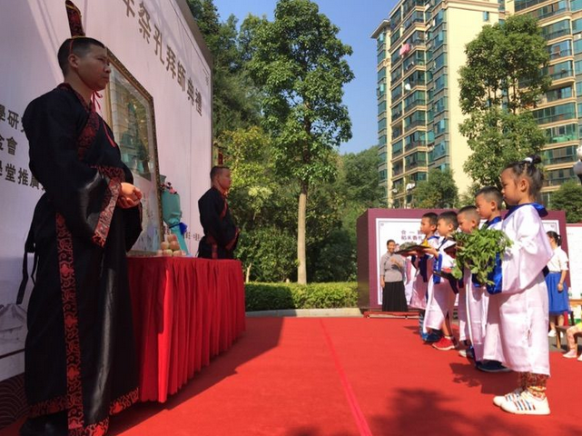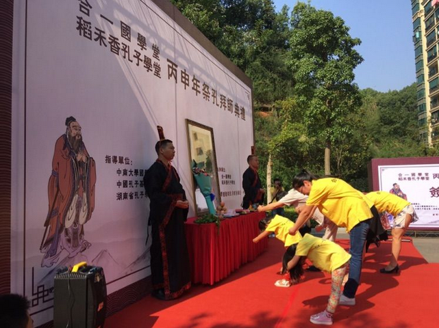 为纪念至圣先师孔子诞辰2567周年,积极响应“全球祭孔联盟”发起的9.28全球同祭孔活动,由中南大学国学研究中心、湖南省孔子学堂推广指导委员会指导发起,稻禾香孔子学堂、合一国学堂于2016年9月24日(周六)上午9:28在雨花区恒大城共同承办举行了隆重的丙申年祭孔拜师典礼,来自各地的传统文化爱好者、践行者,稻禾香“亲子公益读经班”的家长孩子、社区周边幼儿园、学校的家长孩子、合一国学堂小朋友和往届毕业的小朋友及家长近100人,共同出席了本次祭孔拜师仪式,现场气氛庄严,热烈,圆满!