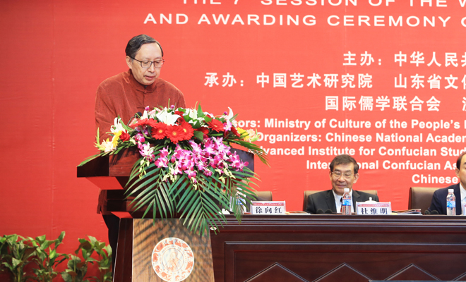 为此,我要向设立孔子文化奖的中华人民共和国文化部、山东省人民政府、济宁市人民政府、曲阜市人民政府,对孔子文化奖评委会及诸评委,给予我个人这一无比的荣誉,表达我个人最深切的感恩和致谢!