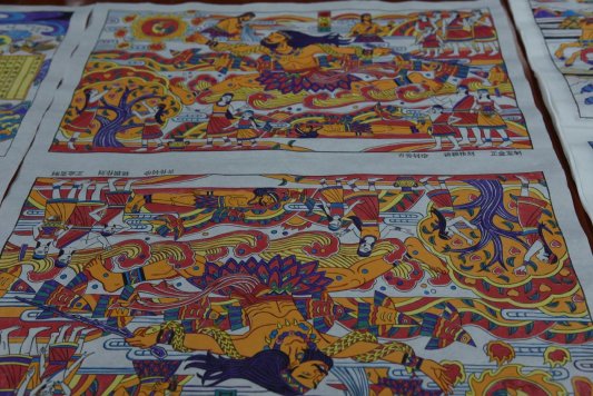 另外,寒亭区年画艺人创作的《柳毅传书》《嫦娥奔月》年画长卷,也已经刻制完成,成为了宣传当地历史文化的文旅精品。在建党一百年之际,创作100幅年画,结成《画说党史·百年辉煌》木版年画集,全面展示建党百年成就。