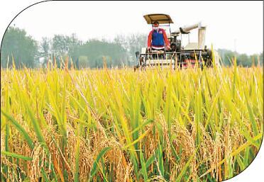 江苏省盱眙县穆店乡龙王山村在收割水稻。新华社发