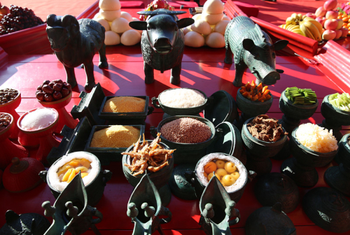 9时,仿古祭孔释奠礼表演正式开始。释奠礼是孔庙祭礼中规格最高的一种。释、奠都有陈设、呈献的意思,指的是在祭典中,陈设音乐、舞蹈,并且呈献酒等祭品。祭孔乐舞具有悠久的历史,是我国宝贵的文化遗产,有巨大的文化和艺术价值,反映了古人高雅的审美意境。在典雅的乐舞中,蕴含了丰富的“礼”、“仁”等儒家思想文化,具有较强的艺术感染力和社会教化作用。今年,继续由北歌先生担任司祭官,由市光明艺校的师生表演八佾舞。另外,今年祭孔所用的祭品由我市传统礼仪专家,也是此次祭孔的主祭官滕任冬先生悉心挑选摆放。《礼记》中关于选择什么样的祭品时说:“是故天时有生也,地理有宜也,人官有能也,物曲有利也。”为此,今年选择祭品考虑了天时、地利、人心等因素,选了一些应季的新鲜的本地物品,如油菜、韭菜、芹菜、玉米、木耳等。其中芹菜在古代学宫举行释奠礼时也常用,表示勤于学业、业精于勤之意。还选了枣,取其谐音“早”,勉励学人珍惜时光,黑发要知勤学早,白发免遭后悔迟。