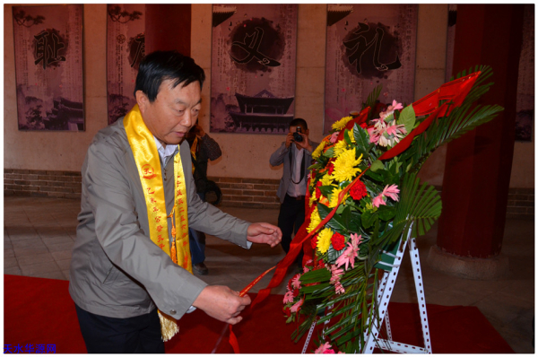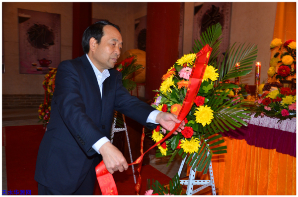 天水市委常委、秦州区委书记雷鸣向孔子圣像敬献花蓝