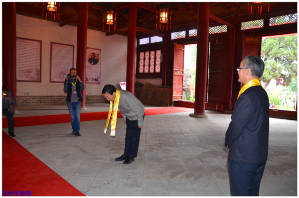 天水孔子文化研究学院副院长、理事长张克源,副理事长张国强,副秘书长彭卫向孔子圣像敬献花篮