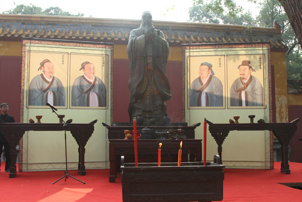 为纪念孔子诞辰2565周年,2014年9月28日上午9点28分,由岳麓书院、凤凰网、凤凰卫视联袂举办的“岳麓书院祭孔大典”正式举行。岳麓书院文庙大成门孔子行教像前,钟鼓齐鸣,气氛庄严肃穆,来自湖南及海内外各界人士代表300余人向至圣先师孔子行礼。活动现场还宣读了弘扬中华优秀传统文化倡议书。