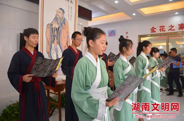 长沙市岳麓区在梅溪湖街道阳明山庄社区举行孔子诞辰2567周年纪念活动。图片来源:湖南文明网