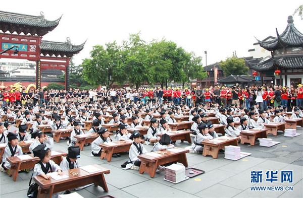 8月31日,南京夫子庙小学一年级新生在夫子庙广场参加“开笔礼”。当日,南京夫子庙小学的一年级新生来到夫子庙参加“开笔礼”,在传统的开笔破蒙仪式中正式入学。