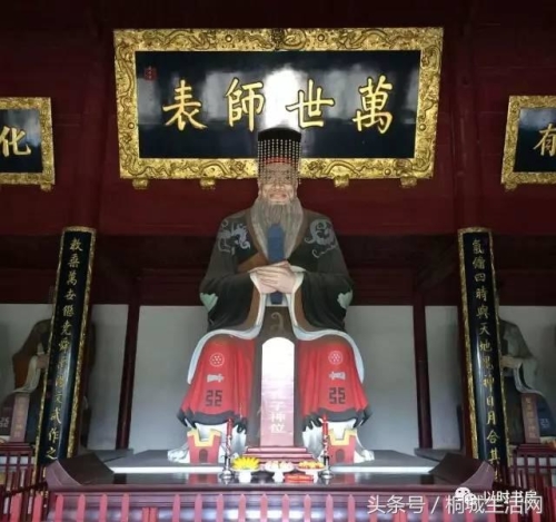 与通常我们所见的供奉牌位不同,桐城文庙大殿内供奉有孔子及其学生塑像,包括孟子、曾子、颜子、子思子等。这些塑像是由江苏专业泥塑师制作,不知造像者是有意表达对孔子的尊重还是无意而为:孔子像的冕旒珠帘达到了12条——按照“天子冕十二旒,诸侯九,上大夫七,下大夫五”的说法,应该是天子之冕。