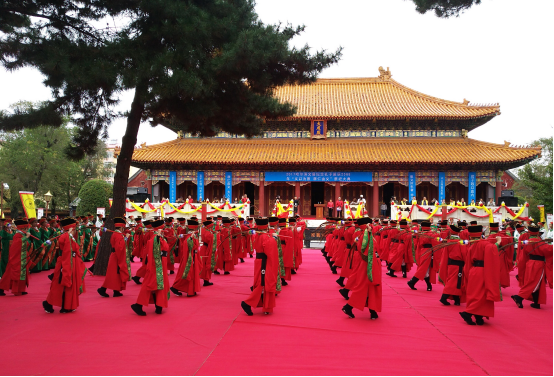中国传统文化十分看重祭孔的作用。祭祀时恭敬的心态、端庄的举止、进退有节,包括佾舞雅乐、美服华章无不体现 “厚德”、“崇礼”、“中庸”等儒家思想,不仅展现了儒家文化的内涵和魅力,也使在场的每一个人得到了心灵的净化和思想的提升,这种仪式感带来的震撼是用其它方式所难以达到的。