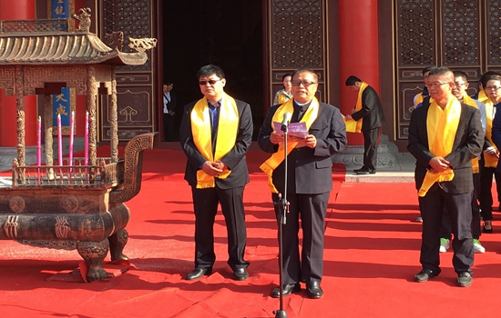 随后,祭祀队伍的嘉宾们肩披祭奠绶带,神情庄重,沿中路缓步走过金声玉振坊、太和元气坊、道贯古今坊和德牟天地坊,走过太和桥,穿过棂星门,到达大成殿前举行主祭仪式,借此方式缅怀先圣、继承传统、弘扬美德、激励后辈。