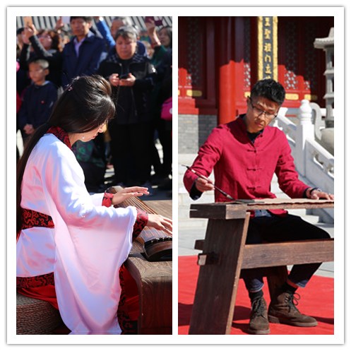 9:00活动正式开始,长春中筝集团光明艺术学校师生在大成殿广场表演了精彩的传统文艺节目。节目包括《拜月礼》,每逢中秋,古人有迎寒祭月之礼,今天与月有约,按照净手、上香、献爵、读祝等步骤还原了古人拜月过程;古筝配舞《月初姣洁》;集书法、茶道、古琴演奏、朗诵等艺术形式于一体的《水墨清荷·明月几时有》。动听的乐曲、优美的舞姿和新颖的艺术形式,展示了中国传统民乐的文化魅力,让现场观众感受到了人文与自然的共生,体验了宛如隐居般的文雅生活。