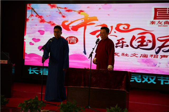 讲座结束后,长春泰友曲艺社的相声演员在明伦堂报告厅和孔子书院报告厅举办了中秋相声专场,表演了传统相声《规矩论》、《对春联》、《二人转趣谈》和快板《绕口令》等节目。泰友社领衔演员、著名相声演员于谦弟子太荣剑和相声名家郭德纲弟子房鹤迪等均到场表演。演出非常精彩,现场气氛十分热烈,不时爆发出笑声和掌声。接下来,文庙工作人员为现场市民、游客免费发送了祝福月饼“金榜题名状元饼”、“步步高升福禄饼”、“喜乐安康长寿饼”和《三字经》、《百家姓》等传统文化书籍,为大家送去美好的节日祝福。