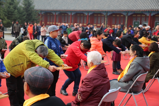 首先,在大成殿广场举行大型茶礼奉孝心活动。吉林旅游广播101.3和长春市雅集堂举行30组家庭子女为老人行礼敬茶仪式。仪式结束后,主持人号召现场年轻人向老年人行了鞠躬礼,体现了爱老敬老的传统。