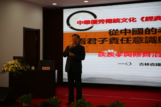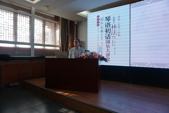随后,同时进行两场专题讲座。在明伦堂报告厅,由吉林省国学研究会副会长刘世荣讲授:从中国的孝道看君子责任意识与担当精神——谈谈孝与修齐治平的关系。刘世荣老师结合《孝经》等国学经典,给现场观众介绍了中国的孝道文化,指导年轻人如何增强孝道意识,自觉培养关爱老人、尊重长者的高尚情怀,以及什么是正确的长幼关系等。在孔子书院报告厅,由台湾青年古琴演奏家林法讲授:琴语初话。这是由中共长春市委宣传部、吉林艺术学院、长春广播电视台联合主办,吉林艺术学院音乐学院承办的大型国乐文化艺术交流推广活动2017“国乐长春”艺术节的一部分。林老师自幼受父亲影响,热爱传统音乐,师从各地古琴名家学习多年。在讲座中,林老师介绍了国乐的基本情况,重点讲解了古琴的有关知识,并现场演示了古琴的演奏技巧,使听众了解到国乐的艺术传承脉络的同时,亲身体会到国乐的巨大魅力。