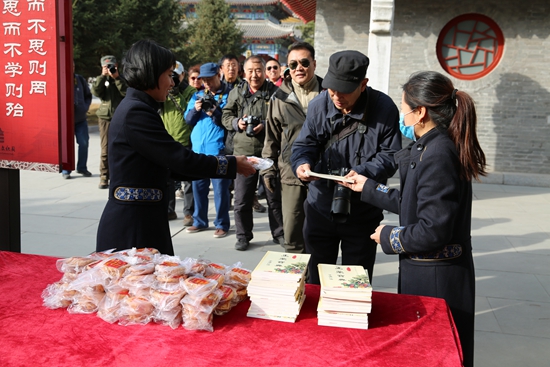 讲座结束后,文庙工作人员为现场市民、游客免费发送了重阳敬老祝寿糕和《孝经》、《三字经》、《百家姓》、《弟子规》等传统文化经典书籍,祝愿大家佳节愉快、福寿绵长,希望大家多了解国学知识,传承中国优秀传统文化。