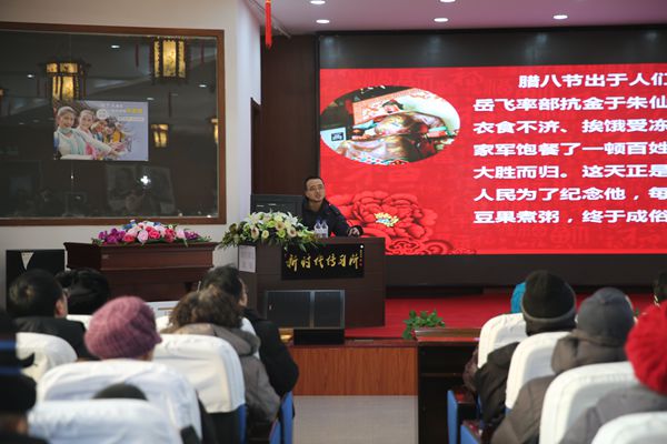 上午九点钟,活动正式开始,首先文庙工作人员带领参加活动的市民、游客在大成殿广场向先师先贤塑像行鞠躬礼,表达敬意。之后在明伦堂多功能报告厅,长春文庙研究部部长邢海波为大家系统介绍了腊八节的来历和习俗,接下来由长春文庙葛彤通过现场演示以及与听众们互动的方式,讲解熬制腊八粥,腌制腊八蒜的方法,普及推广腊八美食知识。