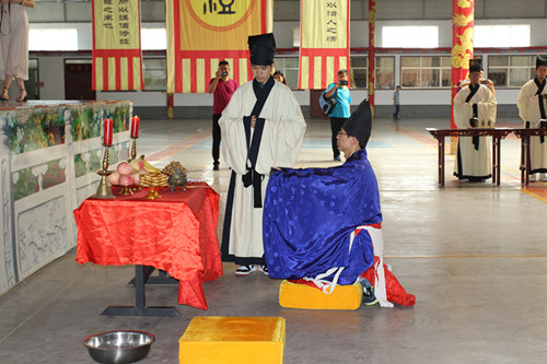 明烛敬香、恭诵告文、行传统礼。整个仪式既体现了古朴、庄严、凝重,又寓教于乐。据此次活动负责人王静老师介绍,与学生、家长一起组织这样的活动,让学生在课堂之外感受儒家文化,让传统文化教育能够更有效地落地,例如“有朋自远方来不亦乐乎”、“己所不欲勿施于人”、“仁者爱人”等经典论述,课堂上学生意境达不到现在状态。特地到曲阜举行这样的仪式,这不同于电视上观看的祭孔大典,让学生深入实际中,对于激发孩子对国学的兴趣、了解更有意义。