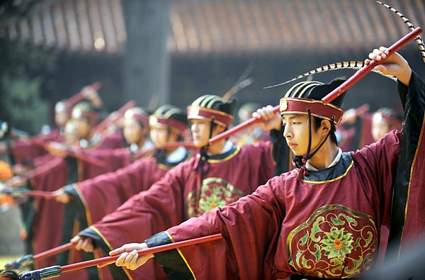 明太祖洪武二十六年(公元1393年)春,颁大成乐於天下,郡县祀孔典礼自此皆用乐。