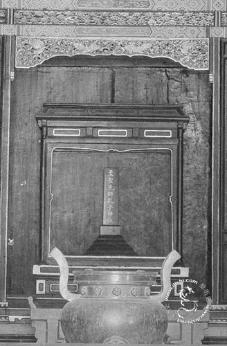 明嘉靖年间,龛内曾设有孔子塑像,由于当时全国各地皆设有文庙,达千余座,而工匠所制孔子像一人千面,因此,嘉靖皇帝将孔子像改为木牌位。