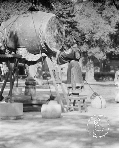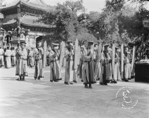 清代在首都北京,每年都要举行两次大型祭祀孔子的仪式,即仲春(农历二月)上旬丁日和仲秋(农历八月)上旬丁日的上丁祭祀,简称“丁祀”或“丁祭”。地点在北京东城国子监旁的文庙(孔庙)。