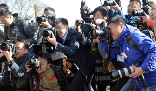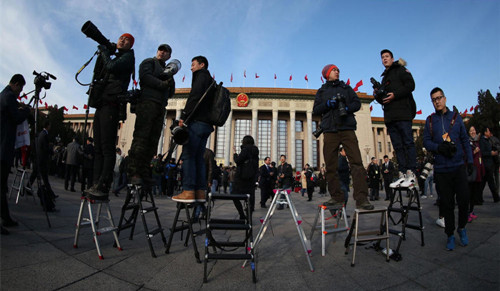 3月5日,人民大会堂前,众摄影记者。东方IC