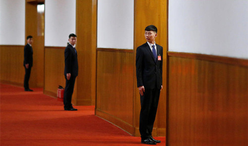 3月5日,执勤的安保工作人员。Reuters