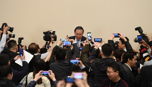 3月2日,全国政协十二届五次会议新闻发布会在北京人民大会堂举行,大会新闻发言人王国庆答中外记者提问。中新社记者韦亮摄