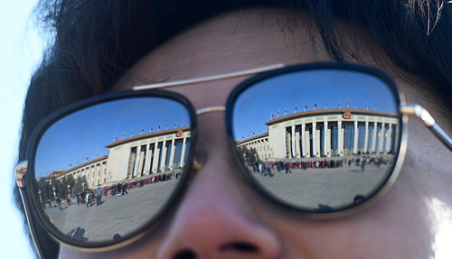 3月5日,第十二届全国人民代表大会第五次会议在北京人民大会堂开幕,一名记者在人民大会堂外等候入场采访。中新社记者韦亮摄