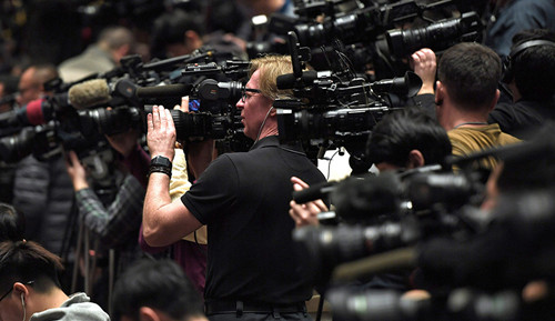 3月5日,第十二届全国人民代表大会第五次会议在北京人民大会堂开幕。图为中外记者关注大会。中新社记者金硕摄