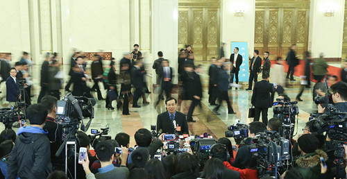 3月5日,十二届全国人大五次会议在北京人民大会堂开幕。记者云集“部长通道”。中新社记者泱波摄
