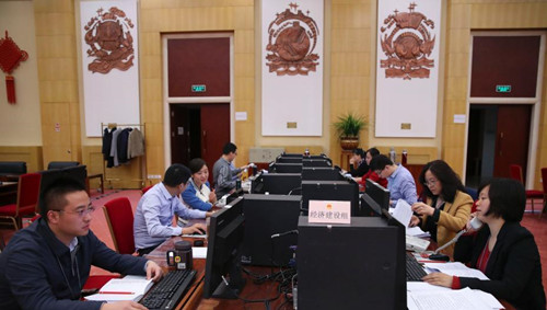 3月13日,十二届全国人大五次会议秘书处议案组,工作人员正抓紧对代表议案逐件进行分析,研究提出初步处理意见,由大会秘书处按程序提请大会主席团审议。秘书处议案组副组长孔平介绍说,十二届全国人大五次会议期间,大会秘书处议案组共收到代表团、代表联名提出的议案514件,收到代表建议8360件。