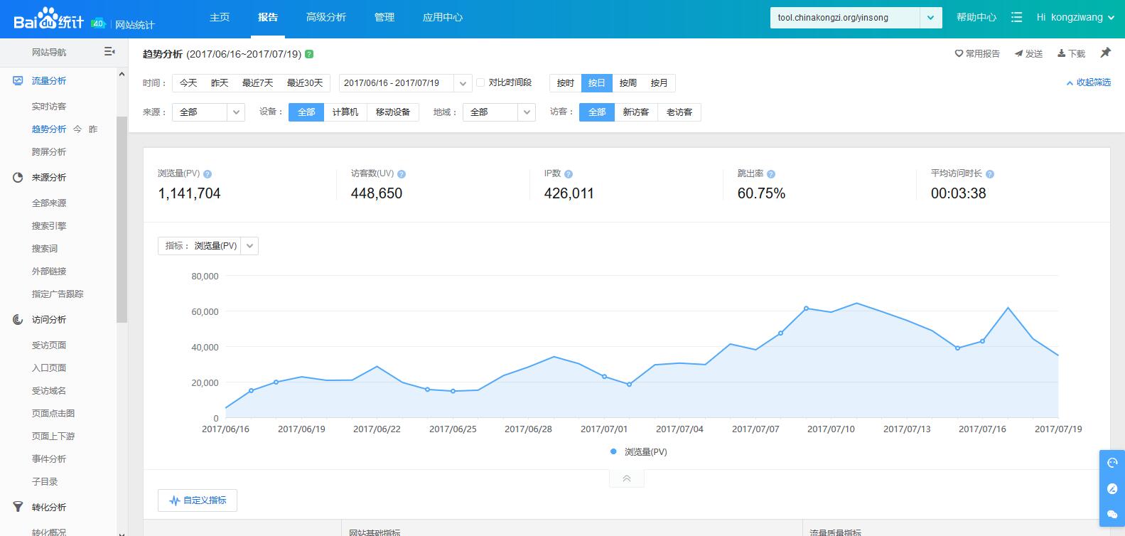 百度统计数据显示:6月16日至7月10日,吟诵大会网页点击量为663665, 7月3日至7月9日一周的点击量为277531,7月13日至7月19日一周的点击量为325501,点击量还在持续上涨之中。