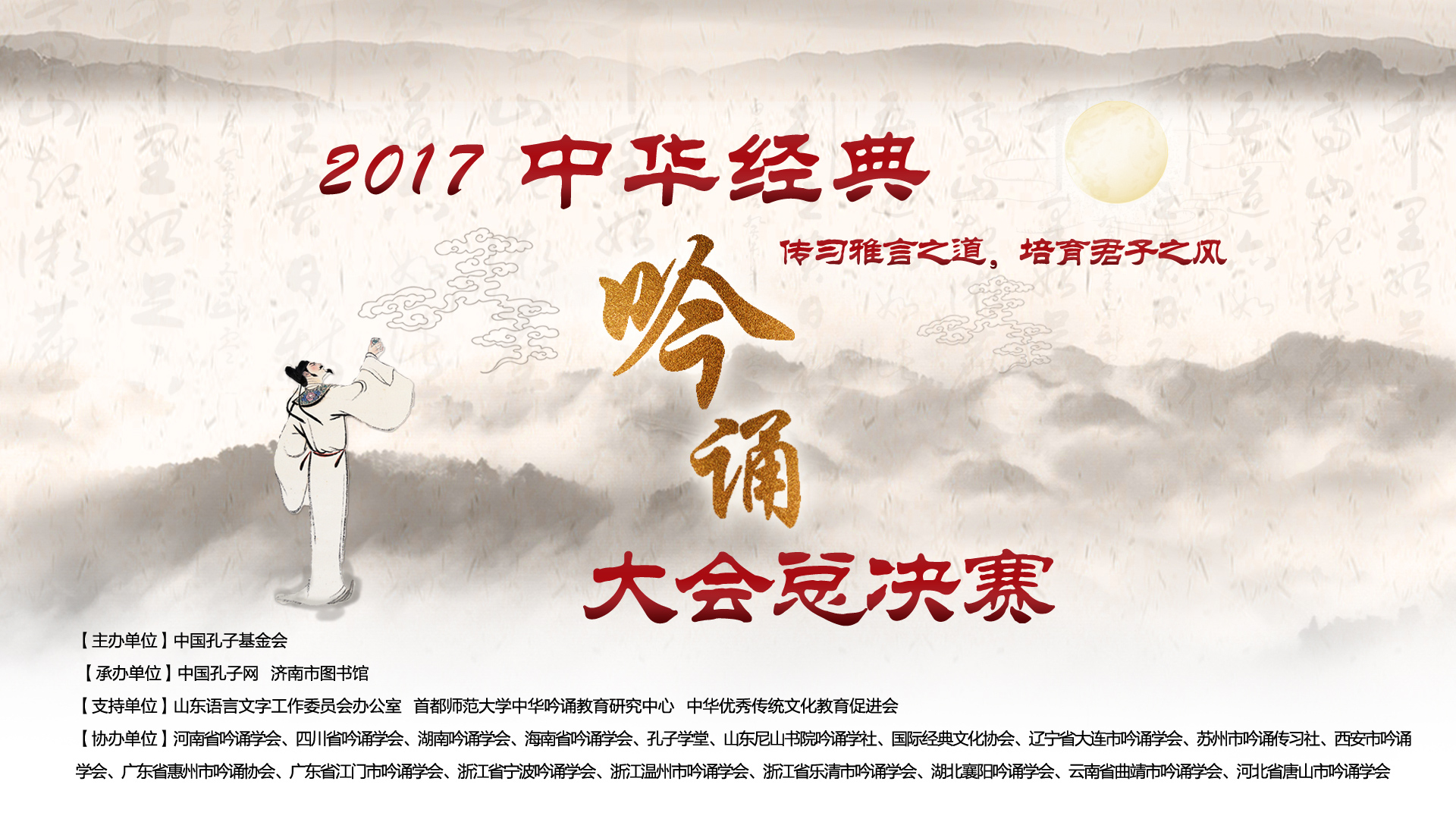 传习雅言之道,培育君子之风!由中国孔子基金会主办、中国孔子网承办的2017中华经典吟诵大会,全国总决赛将于11月2日、3日在济南举行,中国孔子网APP将全程直播,欢迎您下载孔子网APP关注决赛盛况!